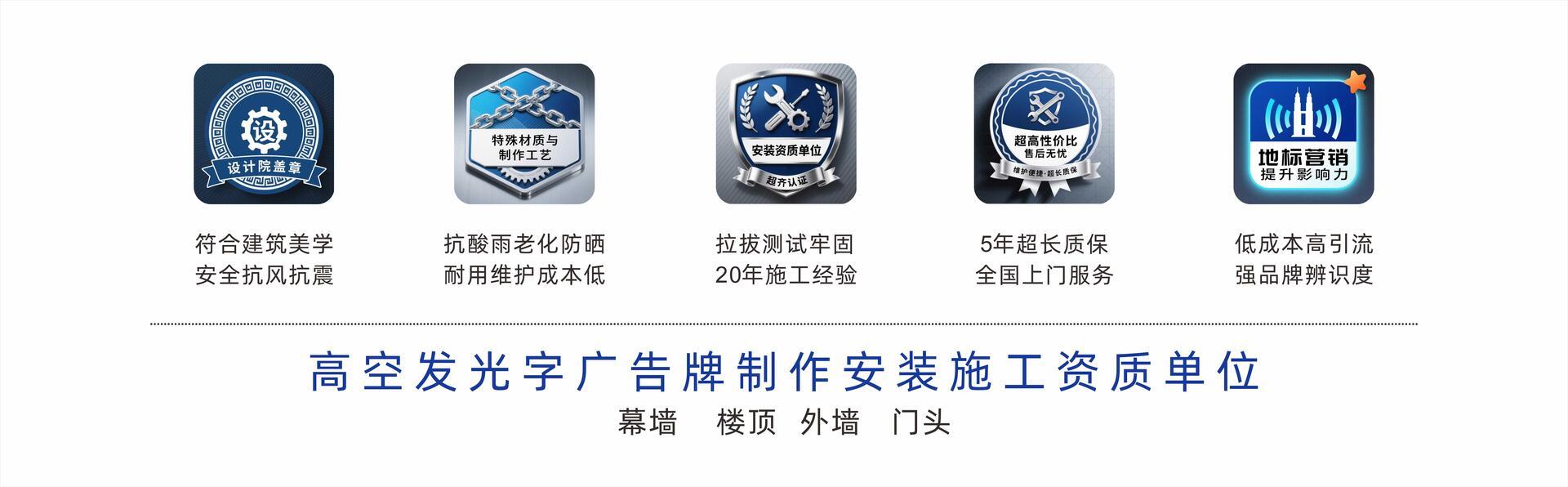 啟達廣告作為玻璃幕墻發光字設計制作安裝施工整體方案服務商,憑借專業實力與全產業鏈優勢,成為高空標識領域的標桿企業。在玻璃...